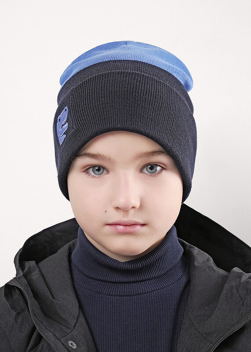 Стильная детская двойная шапка связана гладью. На отвороте декорирована стильной вышивкой - динозавр.Изготовленная из хлопка с добавлением акрила, благодаря чему не покрывается катышками и не теряет форму. Идеальный вариант на осень, весну. Размер 54-56