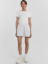 Облегающие шорты на высокой посадке длиной до колена. Широкий притачной пояс из основного материала.