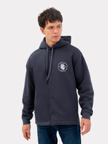 Толстовка с застежкой-молнией по переду на капюшоне из плотного трикотажа футера. Рукава втачные с манжетой, по низу пояс. На капюшоне люверсы со шнуром и наконечниками. Для функциональности и удобства спереди карман-кенгуру, для повседневной носки.