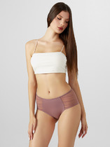 Трусы бикини женские из эластичного хлопкового полотна. По переду рез с кружевной вставкой. Обработка краев по талии и ноге окантовочная резинка.