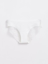 Бикини на хлопке. Модель имеет симметричные кружевные вставки и бант на детали переда и кружевную спинку с треугольной вставкой из (г). По ножке и поясу выполнена обработка резинкой с фестоном.