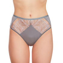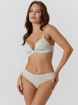 Бикини, комбинированная модель из хлопкового полотна с эластаном и эластичной сетки.На детали переда-фигурный рез, линия которого переходит на спинку.Линии реза и деталь переда декорированы узким кружевом.По талии-ажурная резинка, по ножке-полуокантовка