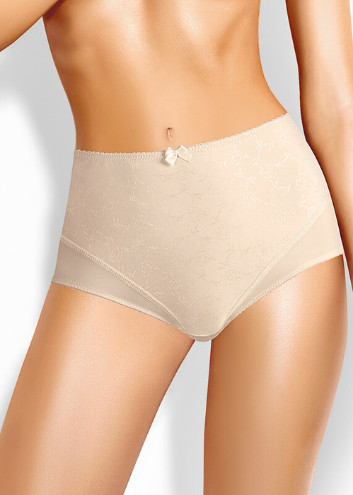 Трусы-макси утяжка женские из полиамида. Обработка краев - ажурная резинка с фестоном. Перед дублируется вставкой из эластичного жаккардового полотна. По переду бант. Производство Китай.