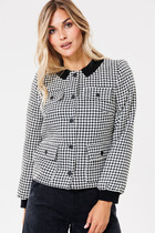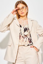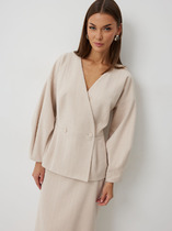 Вязаный жакет из вискозной пряжи с добавлением акрила, свободного силуэта на молнии переплетения гладь. По горловине отложной воротник. Длинный втачной рукав. По низу изделия и рукавов манжеты. По воротнику и манжетам ластичное переплетение.