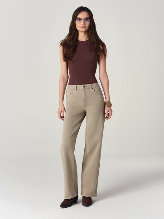 Джинсы карамельного оттенка подчеркнут уникальность вашего стиля. Особенность модели – её фактурное саржевое плетение, которое придаёт ткани визуальный объём и фактуру. Благодаря широкому прямому крою модель не сковывает движения и вытягивает силуэт.