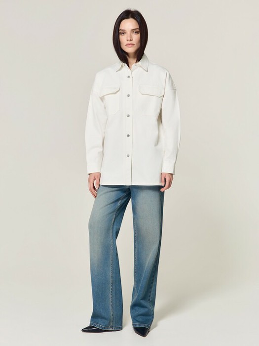 Удлинённая джинсовая ветровка со спущенной линией плеч поможет создать непринуждённый стильный образ. Винтажная фурнитура подчеркнёт изысканность белого цвета, а объёмный силуэт обеспечит максимальный комфорт при носке.