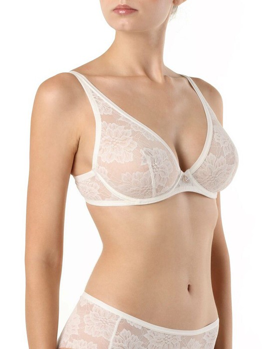 Бюстгальтер Eva c мягкой треугольной чашкой на каркасах выполнен из нежного и женственного кружевного полотна с выразительным цветочным рисунком, которое позволяет создать легкий, изящный и соблазнительный образ.