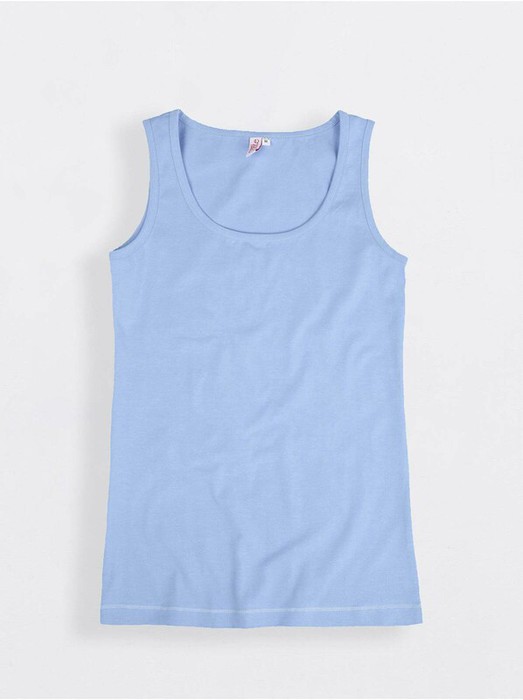 Джемпер женский из трикотажного полотна без рукавов. Круглая головина изделия и проймы окантована широкой бейкой.