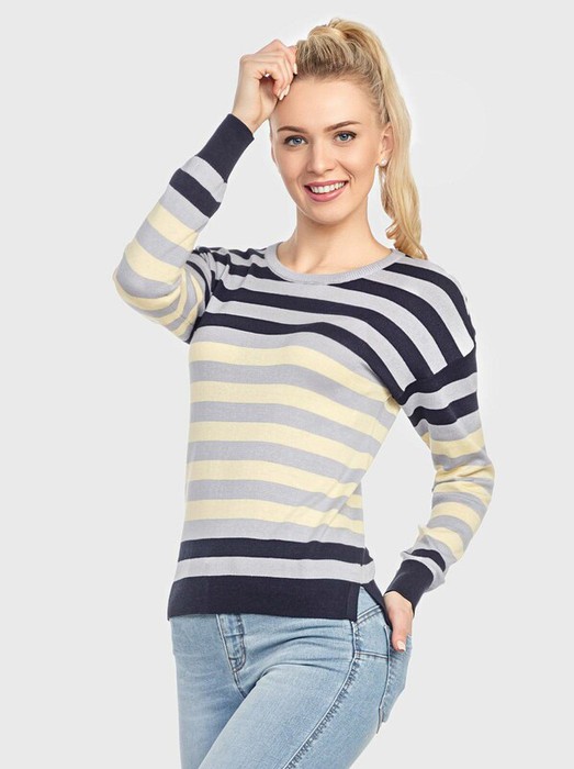 Вязаный джемпер в полоску из легкой и приятной на ощупь пряжи. Стильная модель, которая подойдет для любой ситуации и станет идеальным дополнением вашего гардероба. Гармоничное сочетание комфорта и актуального дизайна. - Круглый вырез- Плечи с напуском- Легкая и приятная на ощупь пряжа