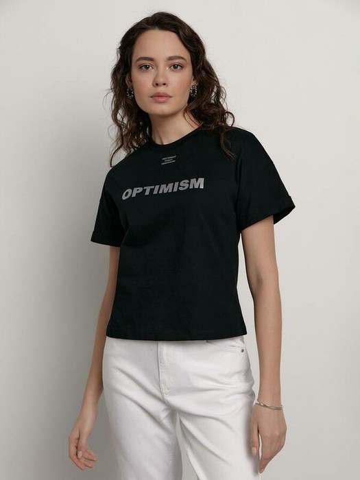 Базовая футболка с рисунком «Optimism» из мягкого хлопка сочетает в себе минимализм и оригинальные тенденции уличной моды.