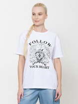 Свободная футболка из хлопка станет основой для множества расслабленных базовых образов, а стильный рисунок добавит вашему повседневному гардеробу больше индивидуальности.
