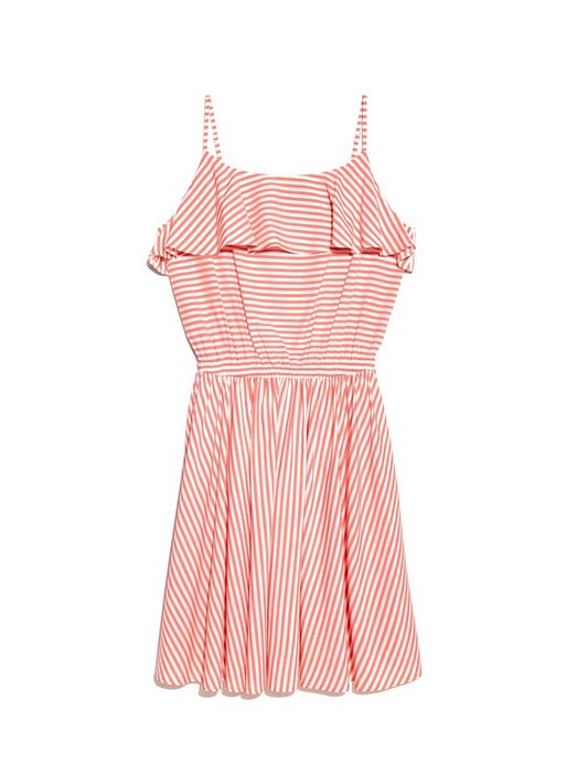 Ультрамодное платье на тонких регулируемых бретелях с широкими рюшами по переду и спинке - must have в летнем гардеробе современной девушки. Благодаря эластичному поясу, свободному силуэту и мягкой драпировке платье безупречно сидит по фигуре и визуально стройнит. Продуманный состав ткани с высоким содержанием вискозы делает платье легким, тактильно приятным и простым в уходе.