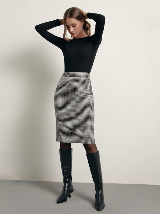 09.04 CONTE ELEGANT Юбки CONTE LU 1414 Юбка прямого силуэта в «гусиную лапку» 2