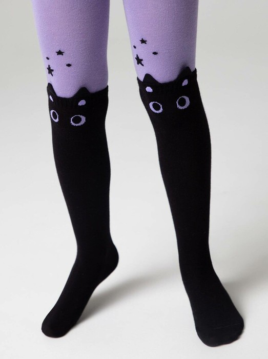 Мягкие эластичные удобные и практичные детские колготки из хлопка, с рисунками-мордашками и декоративными элементами на ножках в виде ушек.