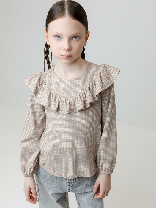 Блузка с воланом для девочки. Изготовлена из высококачественного трикотажного полотна. Оригинальная набивка выполнена из стойких текстильных гипоаллергенных красителей. Блузка сохраняет форму и стойкий цвет после многочисленных стирок и идеально подходит на каждый день. Все трикотажные полотна производятся в соответствии с нормами швейцарского сертификата ЭкоТекс.