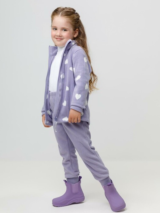 Однотонные детские брюки из флиса с поясом на резинке. Низ изделия на манжетах из эластичного трикотажа в рубчик. Брюки сохраняют цвет и форму после многократных стирок.