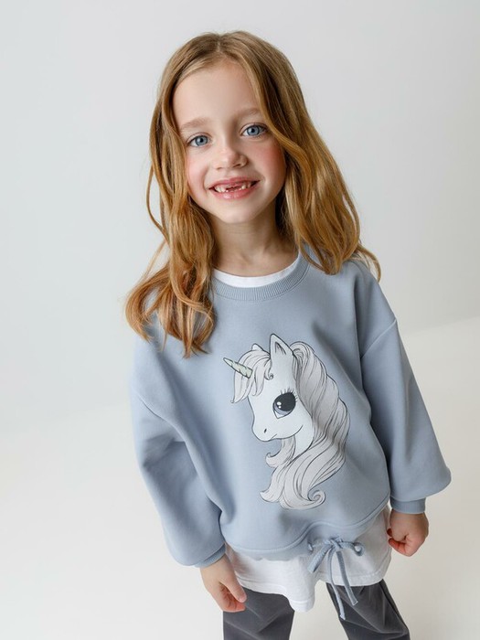 Свитшот для девочки из мягкого петельчатого футера трёхнитки. В составе 80% натурального хлопка и 20% полиэстера, при этом полиэстер ввязан внутрь по особой технологии и не соприкасается с кожей. Застёгивается на кнопки в размерах 92 и 98. Пояс регулируется по ширине с помощью шнурка. На рукавах эластичные манжеты. Оригинальный принт выполнен из стойких текстильных гипоаллергенных красителей. Изделие сохраняет цвет и форму после многократных стирок. Все трикотажные полотна производятся в соответствии с нормами швейцарского сертификата ЭкоТекс.