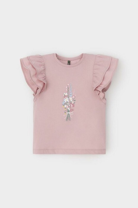 Футболка для девочки из высококачественного трикотажного полотна. Оригинальный принт выполнен из стойких текстильных гипоаллергенных красителей. Для удобства одевания на плече в размерах 92 и 98 есть застежка на кнопки.