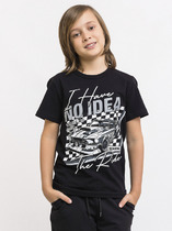 Футболка для мальчика из высококачественного трикотажного полотна. Оригинальный принт выполнен из стойких текстильных гипоаллергенных красителей. Для удобства в размерах 92 и 98 на плече есть застежка на кнопки.