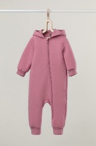 Флисовый комбинезон со съёмным капюшоном для девочки. У изделия высокий воротник и съёмный капюшон на кнопках. Застёгивается на удлинённую молнию. Предусмотрена защита шеи и подбородка. На рукавах и штанинах есть удобные отвороты. Оригинальная набивка выполнена из стойких, гипоаллергенных текстильных красителей. Комбинезон сохраняет цвет и форму после многократных стирок.
