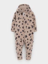 Флисовый комбинезон для мальчика со съёмным капюшоном. Капюшон регулируется по ширине с помощью эластичной утяжки со стопперами. Подклад выполнен из гладкого трикотажа супрем, произведённого из высококачественного натурального хлопка. Застёгивается на удлинённую молнию с мягкой защитой шеи и подбородка. В размерах 62, 68 и 74 на рукавах и ножках есть отвороты. Оригинальная набивка выполнена из стойких гипоаллергенных текстильных красителей. Комбинезон сохраняет цвет и форму после многократных стирок.