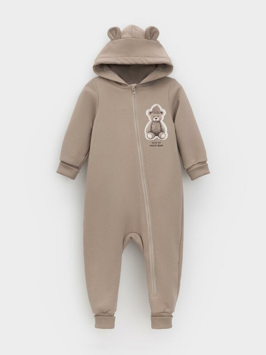 Комбинезон с капюшоном для мальчика. Изготовлен из высококачественного петельчатого футера трёхнитки. В составе 80% натурального хлопка и 20% полиэстера, при этом полиэстер ввязан внутрь по особой технологии и не соприкасается с кожей. Застёгивается на молнию. В капюшоне мягкий подклад из гладкого материала супрем, сверху декоративные ушки. Манжеты и пояс выполнены из эластичного полотна. Изделие сохраняет цвет и форму после многократных стирок. Все трикотажные полотна производятся в соответствии с нормами швейцарского сертификата ЭкоТекс.