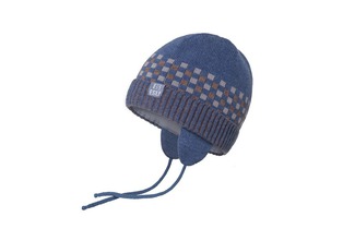 Комплект для мальчика - шапка и снуд из набивного трикотажа рибана с эластаном. Шапка с удлинённой скругленной макушкой, украшена жаккардовой нашивкой. Снуд сплошной.