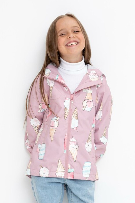 Ветровка для девочки из мембранной ткани с дополнительной тефлоновой обработкой.  Верхняя мембранная ткань 1000/1000 с тефлоновым покрытием отталкивает воду и грязь и обладает «дышащими» свойствами. Подкладка выполнена из 100% хлопка. У изделия предусмотрена защита подбородка. Несъемный капюшон регулируется с помощью эластичного шнура со стопперами. Низ рукавов имеет эластичную резинку для лучшего прилегания. Во всех изделиях верхнего ассортимента для безопасности ребенка предусмотрены светоотражающие элементы.