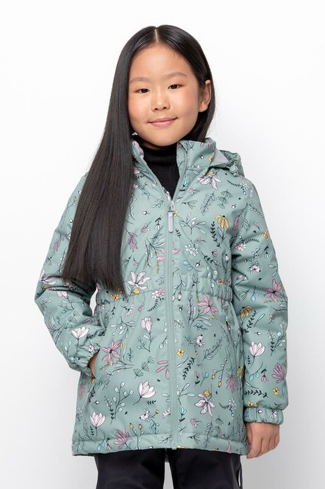 Демисезонная куртка для девочки с утеплителем Fellex®: 120 г/м2 . Выполнена из мембранной ткани с дополнительной тефлоновой обработкой. Данный вид обработки предохраняет изделие от загрязнения и лучше отводит влагу. Подклад из 100% полиэстера. У изделия предусмотрена защита подбородка. Несъемный капюшон регулируется с помощью эластичного шнура со стопперами. Низ рукавов и пояс изделия имеют эластичную резинку для лучшего прилегания. Во всех изделиях верхнего ассортимента для безопасности ребенка предусмотрены светоотражающие элементы.