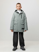 Зимняя парка для мальчика с утеплителем  SEE®: 250 г/м2. Выполнена из мембранной ткани с дополнительной тефлоновой обработкой, которая предохраняет изделие от загрязнений и отталкивает влагу. Подклад выполнен из 100% полиэстера Tricot. Парка застёгивается на молнию и внешнюю планку с металлическими кнопками, предусмотрена защита подбородка. Съёмный капюшон на кнопках и липучках имеет эластичную утяжку со стопперами и отстёгивающуюся опушку из искусственного меха. На рукавах внутренние эластичные манжеты. Два накладных кармана с клапанами по бокам. По талии эластичная утяжка со стопперами. Во всех изделиях верхнего ассортимента для безопасности ребёнка предусмотрены светоотражающие элементы.