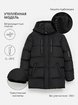 Пальто для мальчика с натуральным утеплителем из гипоаллергенного гусиного пуха (70%) и пера (30%). Рекомендованный температурный режим - от -5° до -30°.