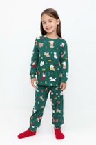 Трикотажная пижама из натурального хлопка. Джемпер с длинными рукавами с эластичными манжетами. У брюк эластичный пояс на резинке. Оригинальная набивка и принт выполнены из стойких, гипоаллергенных текстильных красителей. Пижама сохраняет цвет и форму после многократных стирок. Все трикотажные полотна производятся в соответствии с нормами Швейцарского сертификата ЭкоТекс.