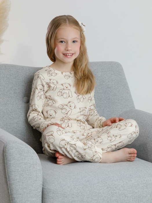 Трикотажная пижама из натурального хлопка. Джемпер с длинными втачными рукавами и брюки с эластичной резинкой в поясе. Мягкие манжеты на рукавах и по низу брюк. Оригинальная набивка выполнена из стойких текстильных гипоаллергенных красителей. Изделие сохраняет цвет и форму после многократных стирок. Все трикотажные полотна производятся в соответствии с нормами швейцарского сертификата ЭкоТекс.