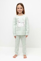 Трикотажная пижама из натурального хлопка.  Футболка с короткими рукавами с принтом. У брюк эластичный пояс на резинке. Оригинальные принт и набивка выполнены из стойких, гипоаллергенных текстильных красителей. Пижама сохраняет цвет и форму после многократных стирок. Все трикотажные полотна производятся в соответсвии с нормами Швейцарского сертификата ЭкоТекс.