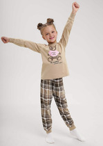 Трикотажная пижама из натурального хлопка.  Джемпер с длинными рукавами с принтом. У брюк эластичный пояс на резинке. Оригинальные принт и набивка выполнены из стойких, гипоаллергенных текстильных красителей. Пижама сохраняет цвет и форму после многократных стирок. Все трикотажные полотна производятся в соответсвии с нормами Швейцарского сертификата ЭкоТекс.