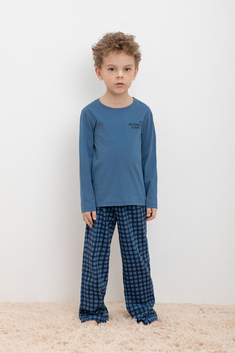 Crockid пижама дет К 1600/синяя волна,бежевая клетка