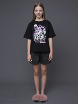 Пижама для девочки из натурального хлопка. Джемпер с длинными втачными рукавами и брюки с эластичной резинкой в поясе. Мягкие манжеты по низу брюк сделаны из материала в рубчик. Оригинальная набивка и принт выполнены из стойких текстильных гипоаллергенных красителей. Изделие сохраняет цвет и форму после многократных стирок. Все трикотажные полотна производятся в соответствии с нормами швейцарского сертификата ЭкоТекс.