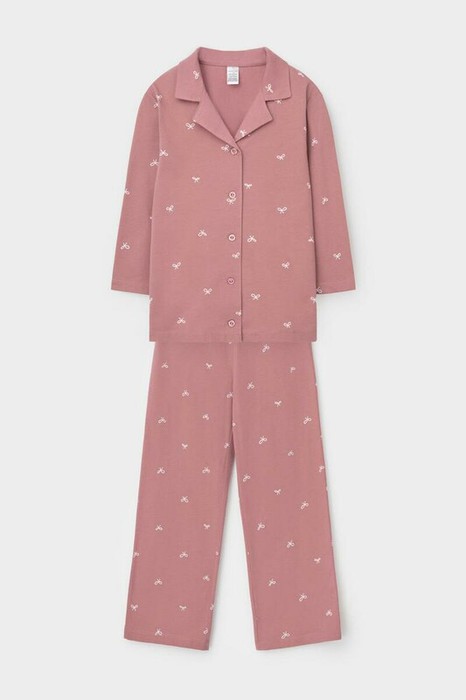 Трикотажная пижама из натурального хлопка. Рубашка с застежкой на пуговицы и длинными втачными рукавами. У брюк в комплекте мягкий, эластичный пояс на резинке. Оригинальная набивка выполнена из стойких, гипоаллергенных текстильных красителей. Комплект сохраняет цвет и форму после многократных стирок. Все трикотажные полотна производятся в соответсвии с нормами Швейцарского сертификата ЭкоТекс.