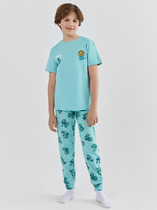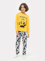 Трикотажная пижама из натурального хлопка. Джемпер с длинными втачными рукавами и брюки с эластичной резинкой в поясе. Мягкие манжеты на рукавах и по низу брюк. Оригинальная набивка и принт выполнены из стойких текстильных гипоаллергенных красителей. Изделие сохраняет цвет и форму после многократных стирок. Все трикотажные полотна производятся в соответсвии с нормами швейцарского сертификата ЭкоТекс.