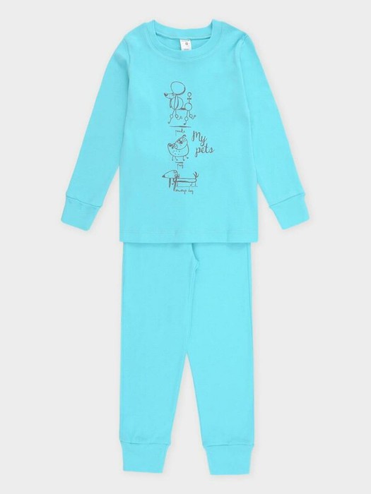 Трикотажная пижама из натурального хлопка. Футболка с длинными втачными рукавами. У брюк в комплекте мягкий, эластичный пояс на резинке. Оригинальный принт выполнен из стойких, гипоаллергенных текстильных красителей. Комплект сохраняет цвет и форму после многократных стирок. Все трикотажные полотна производятся в соответсвии с нормами Швейцарского сертификата ЭкоТекс.