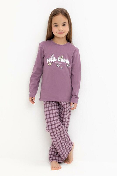 Crockid пижама для дев К 1623/спелый виноград,клетка