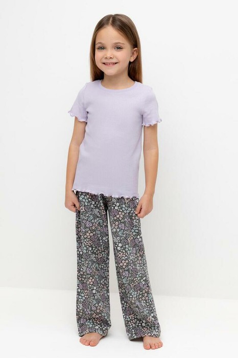 Трикотажная пижама из натурального хлопка. Футболка с короткими втачными рукавами. У футболки рукава и низ изделия обработаны микрооверлоком У брюк в комплекте мягкий, эластичный пояс на резинке. Оригинальная набивка выполнена из стойких, гипоаллергенных текстильных красителей. Комплект сохраняет цвет и форму после многократных стирок. Все трикотажные полотна производятся в соответсвии с нормами Швейцарского сертификата ЭкоТекс.