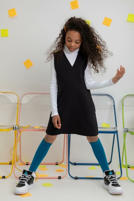 Платье школьное для девочки. Произведено из мягкого трикотажного футера трёхнитки.. В составе 80% натурального хлопка и 20% полиэстера, при этом полиэстер ввязан внутрь по особой технологии и не соприкасается с кожей.