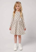 Платье с длинными рукавами из петельчатого футера. Изделие сохраняет цвет и форму после многократных стирок. Предусмотрена застежка на кнопки на спине.