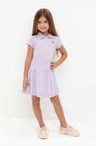 Платье для девочки из высококачественного трикотажа пике с воротничком и крылышками. Для удобства одевания платье застёгивается на кнопки спереди. Платье сохраняет форму и стойкий цвет после многочисленных стирок и идеально подходит на каждый день.