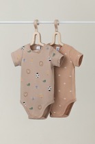 Боди для новорождённых из мягкого эластичного трикотажа, произведённого из натурального хлопка. В упаковке 2 штуки. Застёгиваются на кнопки спереди и по низу изделий. Оригинальная набивка выполнена из стойких гипоаллергенных текстильных красителей. Все трикотажные полотна производятся в соответствии с нормами Швейцарского сертификата ЭкоТекс.