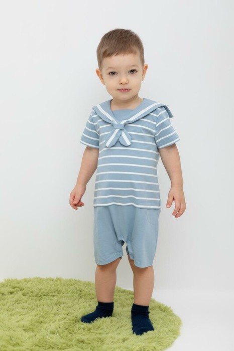 Совместные покупки Сургут Детская одежда Боди, ползунки и прочее — Crockid полукомбинезон д/мал яс КР 6159/пыльно-синий,полоска к470