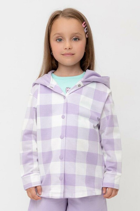 24.03 Crockid рубашка для дев КР 302698/пастельно-лиловый,клетка виши к541