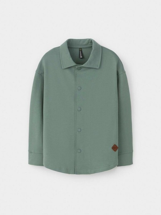 Свободная трикотажная рубашка для мальчика из мягкого петельчатого футера. Застёгивается на кнопки. Модель с закругленным низом и спущенным плечом.