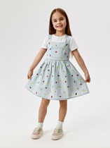 Сарафан на лямках из капитония с двумя накладными карманами. Капитоний – это стёганое трикотажное полотно с утеплителем из полиэстеровой нити. Лямки застегиваются на пуговицы. Все трикотажные полотна производятся в соответствии с нормами швейцарского сертификата ЭкоТекс.